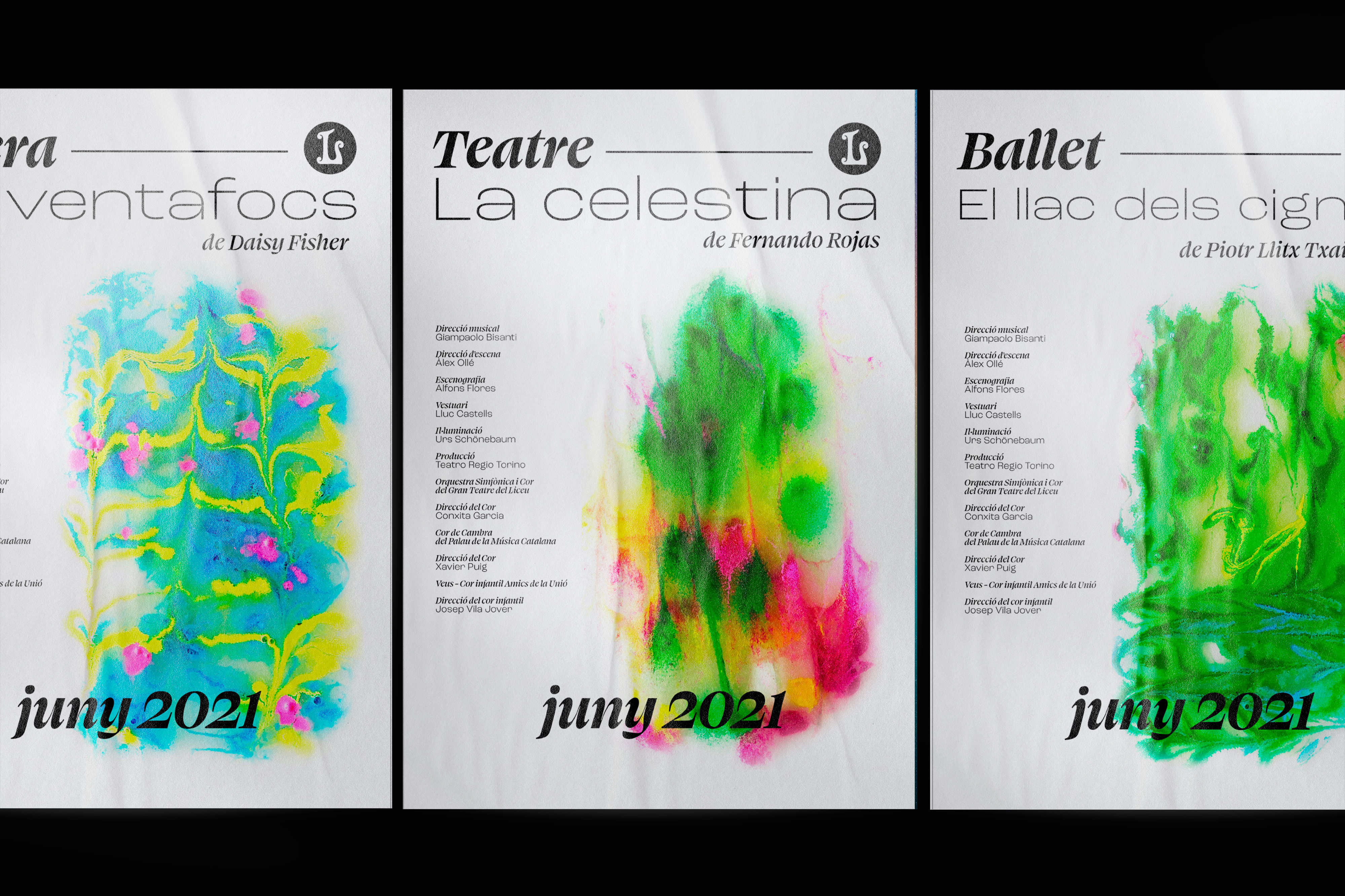 Posters made with the marbling technique for Liceu’s